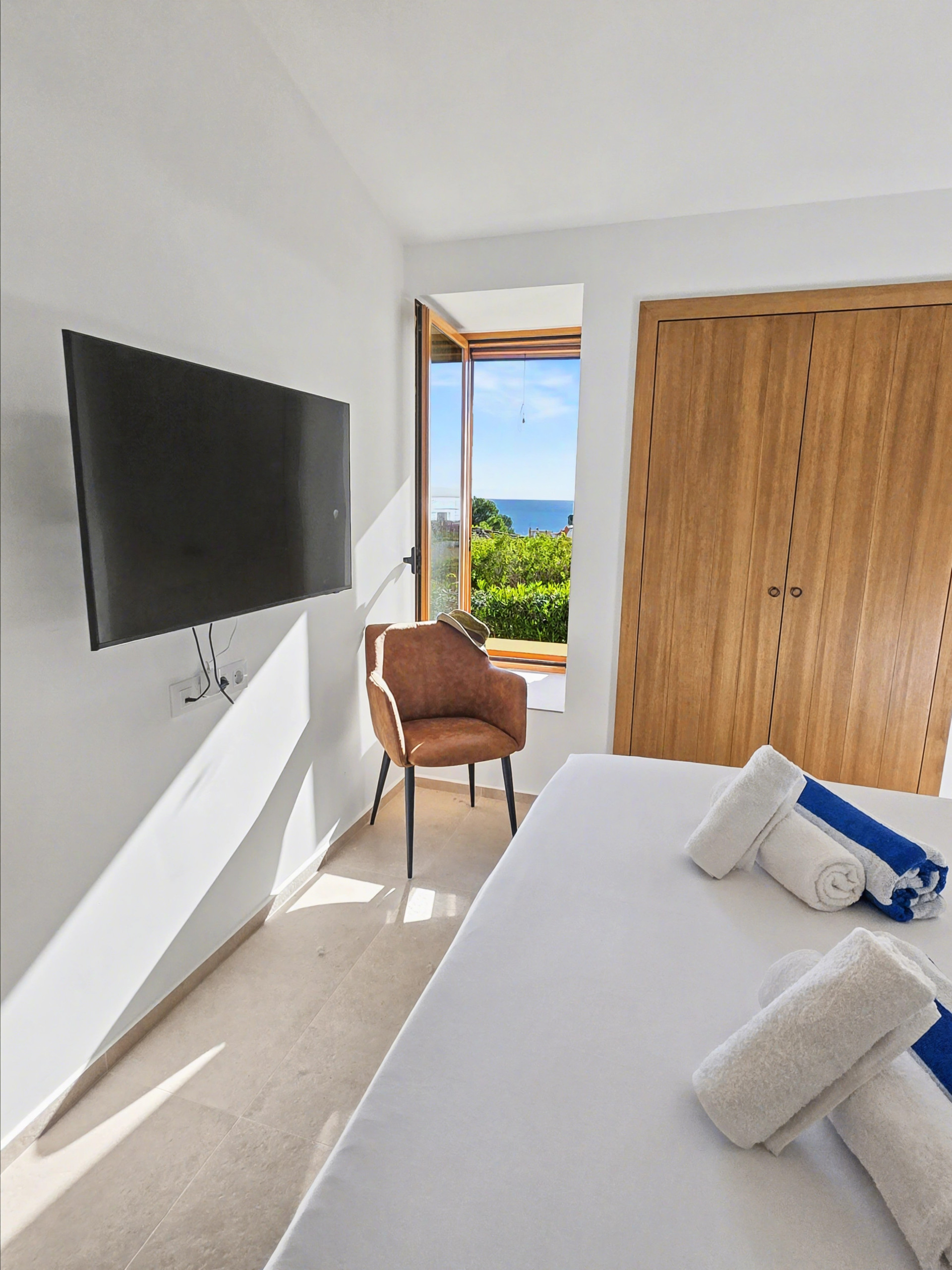 Zona de descanso: 4 dormitorios orientados al sur con vistas directas al mar desde sus ventanas, 2 baños modernos con ducha y un aseo de cortesía.