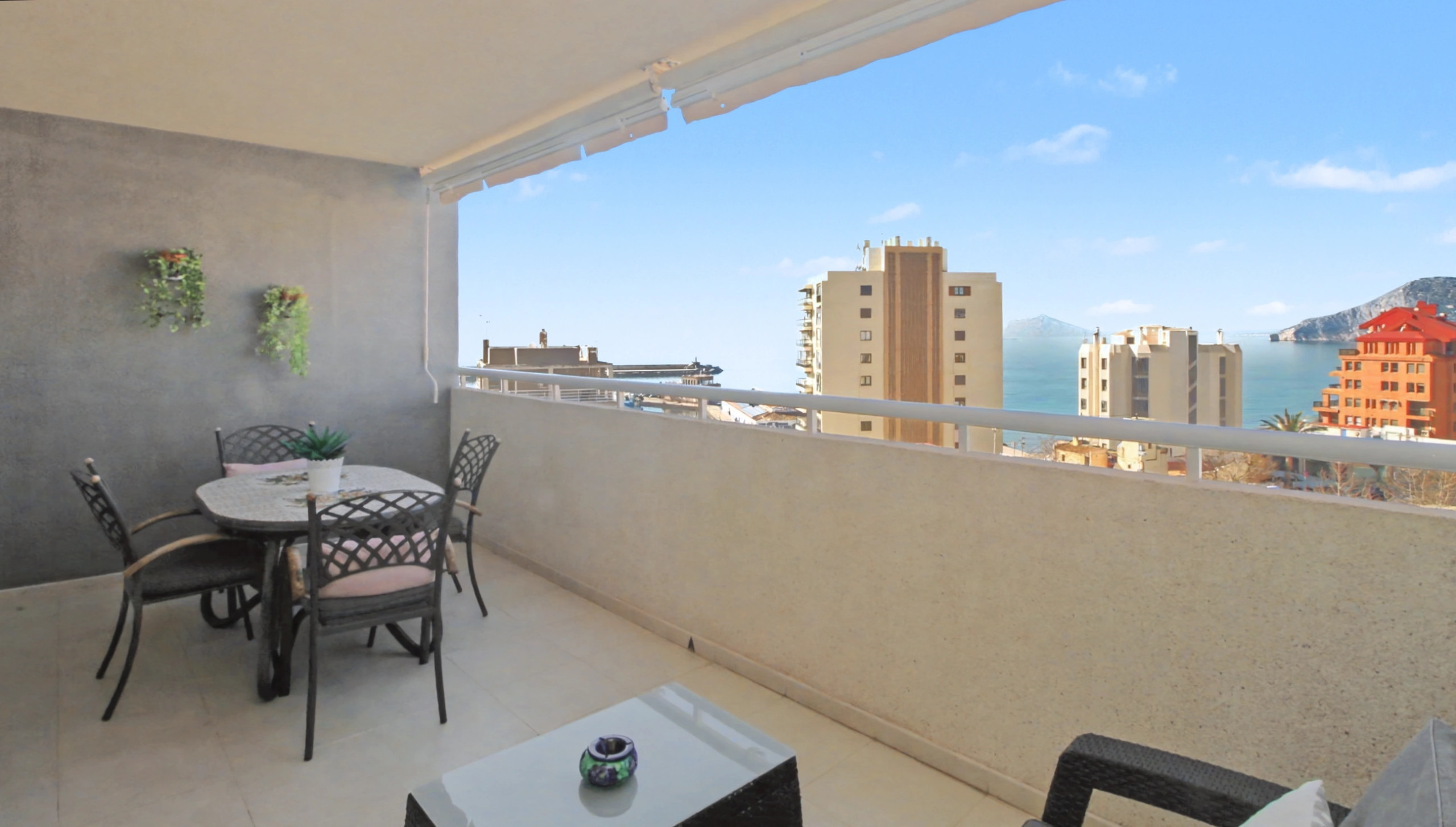 Von Beginn an nimmt man die Weite und Helligkeit wahr. Der großzügige und einladende Wohn-Essbereich öffnet sich direkt zu einer privaten Terrasse mit Blick aufs Meer, dem perfekten Ort, um das privilegierte Klima der Costa Blanca das ganze Jahr über zu genießen.