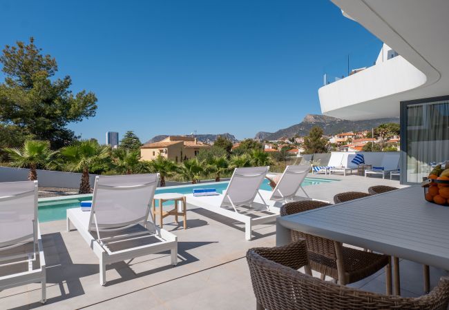 Avanoa präsentiert diese stilvolle, moderne Villa in einer ruhigen und begehrten Lage mit atemberaubendem Bergblick, nur 5 Autominuten von Altea La Vella entfernt, wo alle Dienstleistungen und...