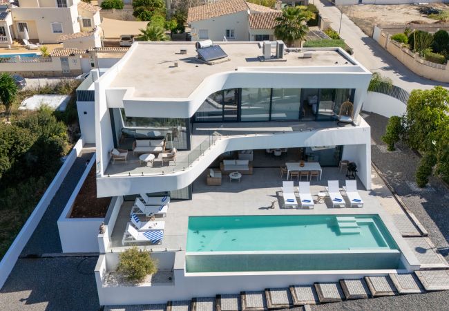 Willkommen in der Villa Ihrer Träume in Calpe! Diese beeindruckende Residenz, entworfen vom renommierten Architekten Ramón Gandía, erhebt sich majestätisch auf einem 922m2 großen Grundstück und...