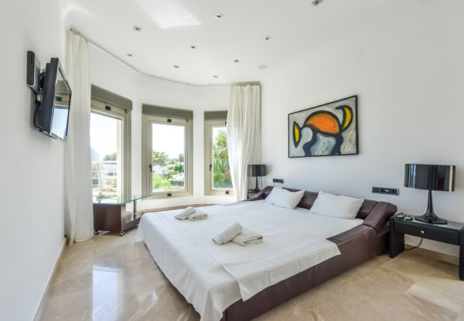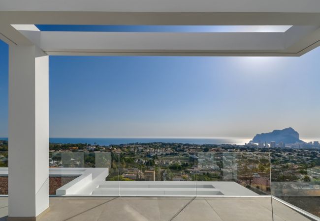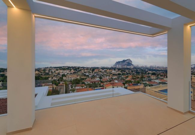 Gelegen in einem erhöhten Bereich von Calpe, rühmt sich diese Villa außergewöhnlicher Panoramablicke, die sich von Calpe bis Moraira erstrecken, mit dem majestätischen Peñón de Ifach als...