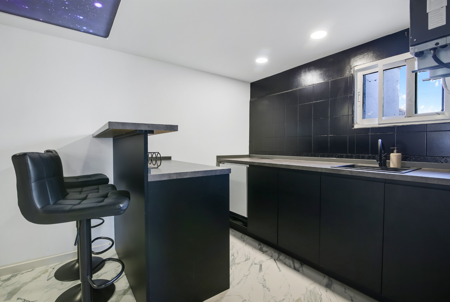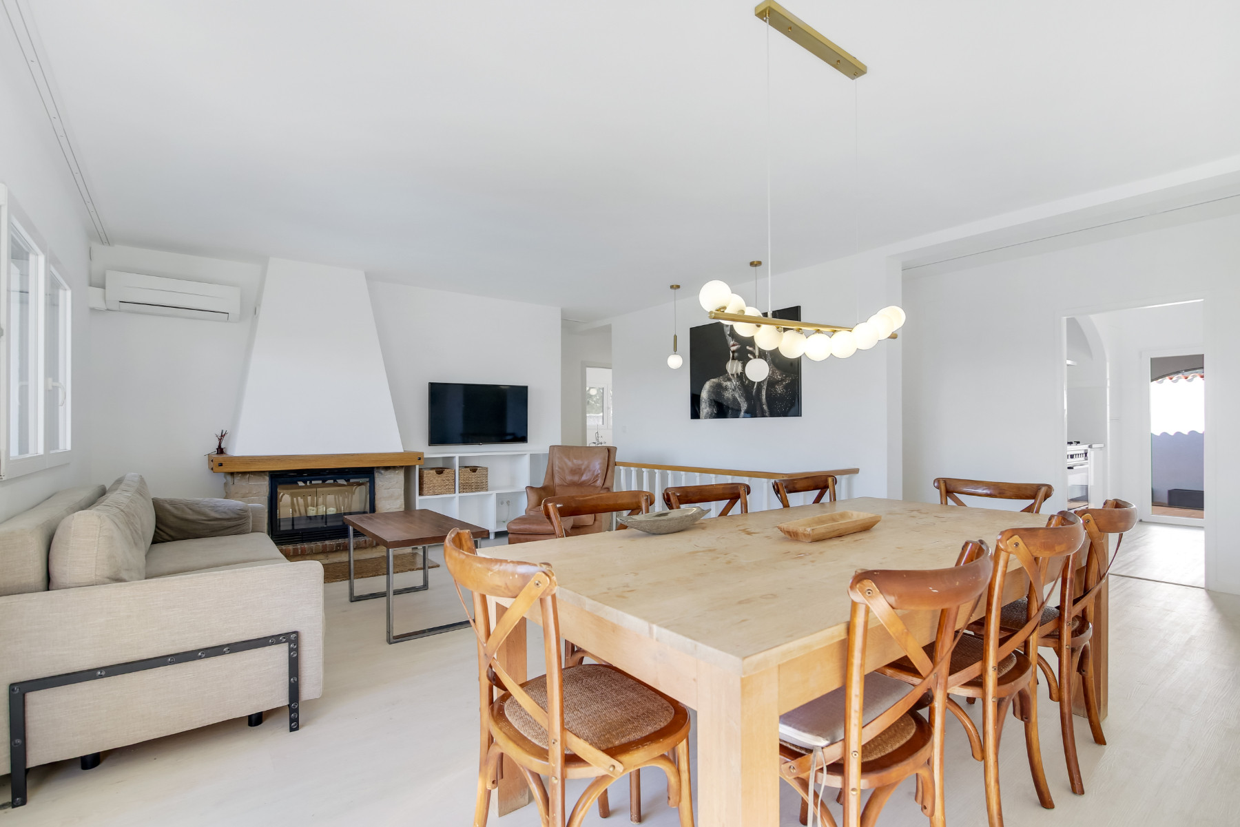 In der Eingangsetage finden wir einen geräumigen und lichtdurchfluteten Salon-Essbereich mit Kamin, der mit einer modernen, vollständig ausgestatteten Küche verbunden ist.