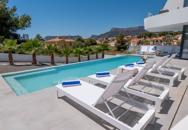 Willkommen in der Villa Ihrer Träume in Calpe! Diese beeindruckende Residenz, entworfen vom renommierten Architekten Ramón Gandía, erhebt sich majestätisch auf einem 922m2 großen Grundstück und bietet eine Oase des Luxus und Komforts in einer idyllischen Umgebung.