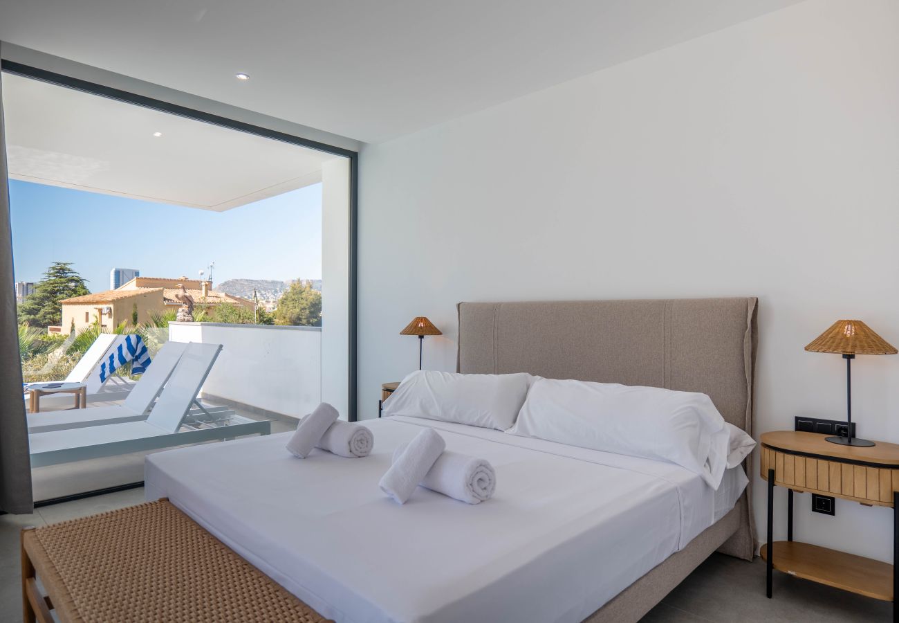 Mit einem stufenlosen Zugang von der privaten Parkfläche werden Sie von einem modernen und funktionalen Design empfangen, das die Schönheit des Raumes maximiert. Die weitläufigen Terrassen und der spektakuläre Infinity-Pool (10,5 x 4 m2) laden Sie ein, das mediterrane Klima und den Outdoor-Lebensstil zu genießen.
