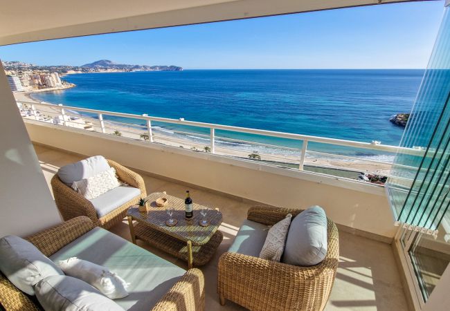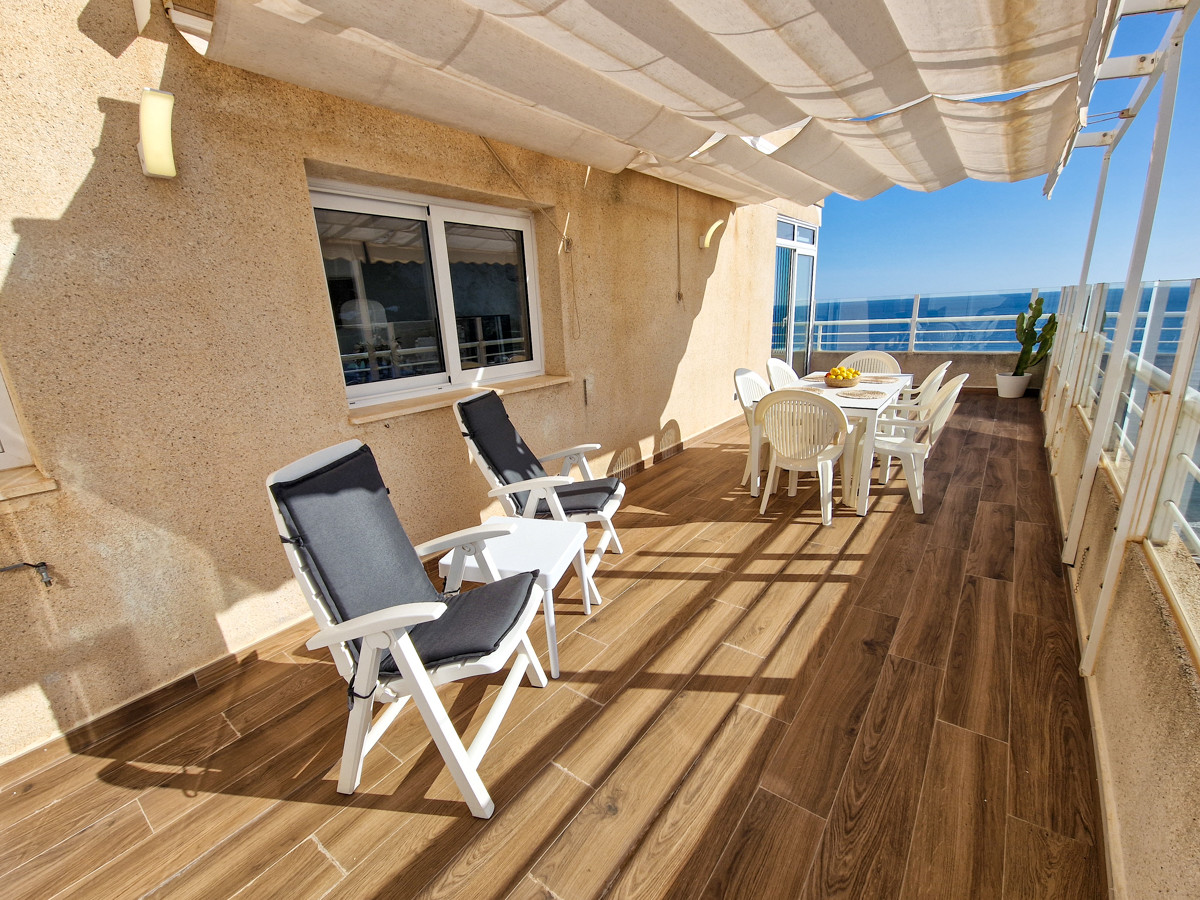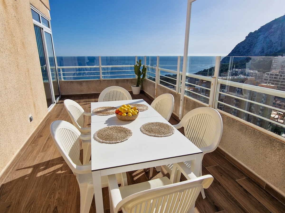 Semi-Penthouse komplett im Jahr 2022 mit beeindruckenden Panoramablick auf das Meer renoviert, mit Blick von Moraira nach Benidorm, einschließlich der Peñon de Ifach, die den Eindruck, in der Lage zu umarmen gibt. Es verfügt über einen großen überdachten und geschlossenen Balkon mit Glasschiebefenstern mit Blick auf den Strand von La Fossa und eine weitere offene Terrasse mit klappbaren Markisen, mit Blick auf den Felsen und das Gesicht des Arenal-Bol de Calpe, so dass die gesamte Bucht umfasst; wo die Boote ankern Schaffung eines herrlichen Bildes für Ihren Urlaub Erinnerungen in Calpe.