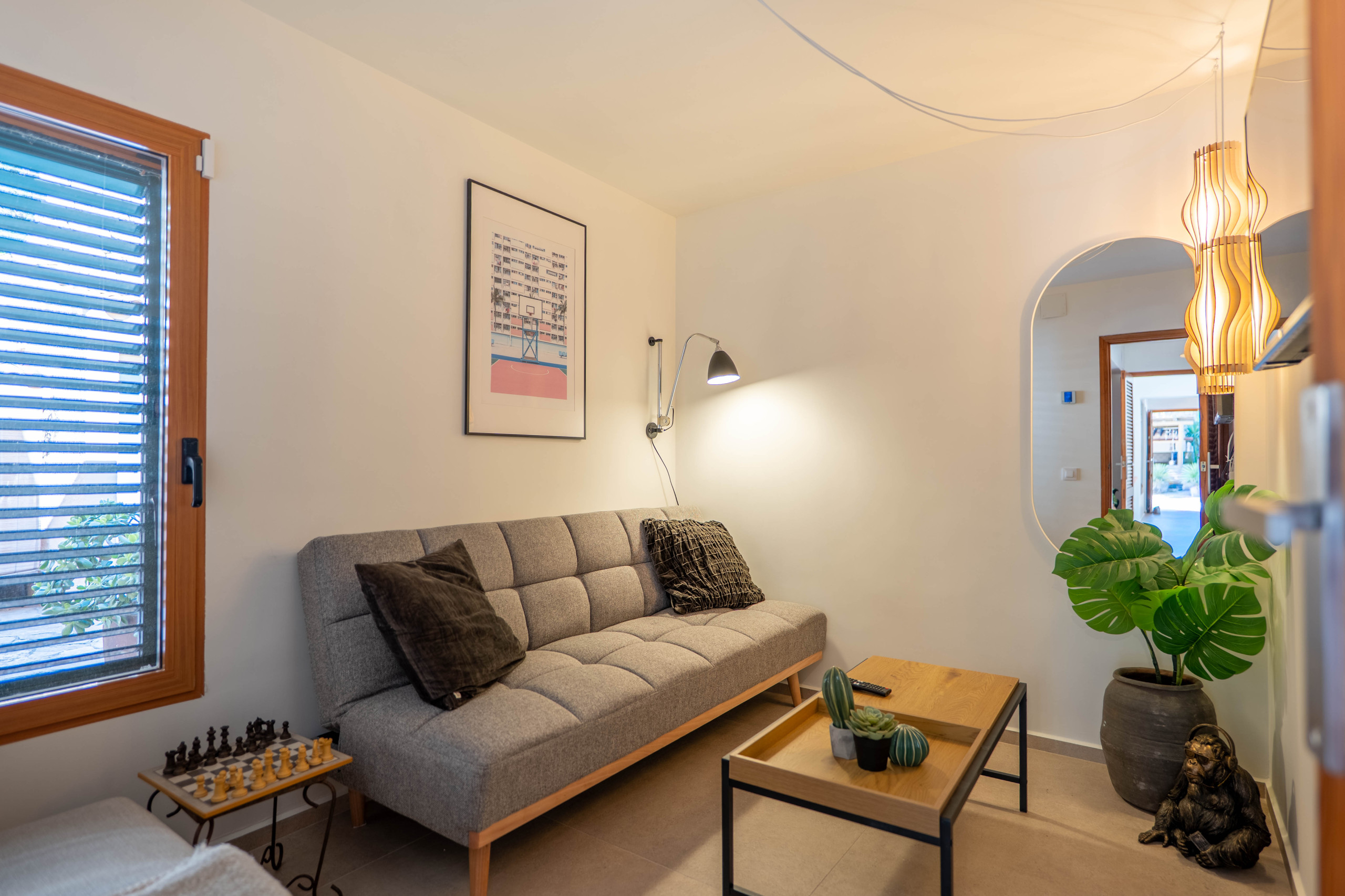 Coin de détente : Un salon supplémentaire avec un canapé et une TV, le refuge parfait pour lire ou pour que les plus jeunes profitent de la console en toute indépendance.