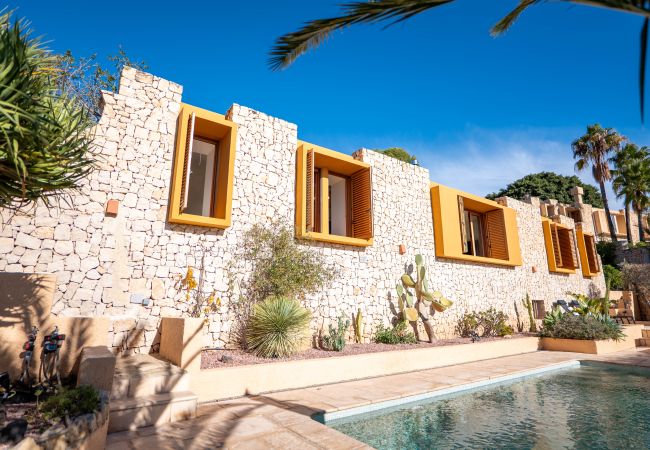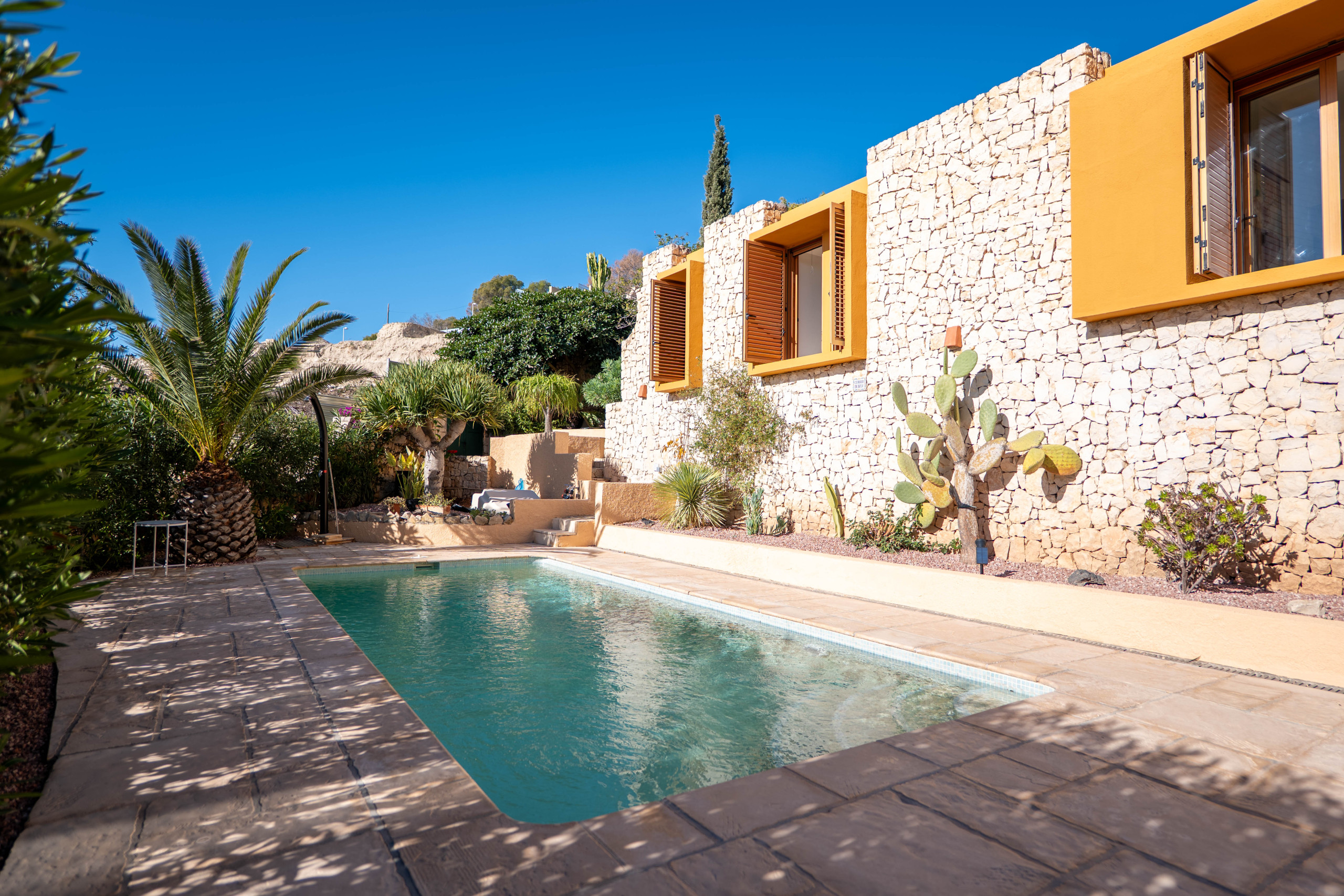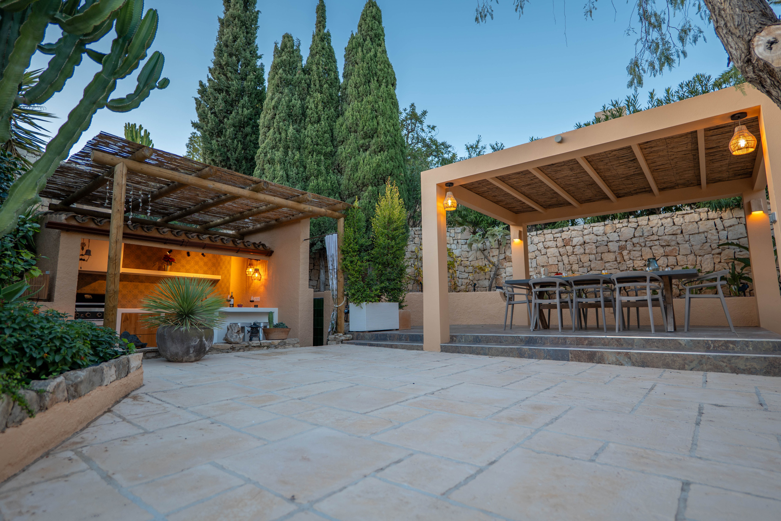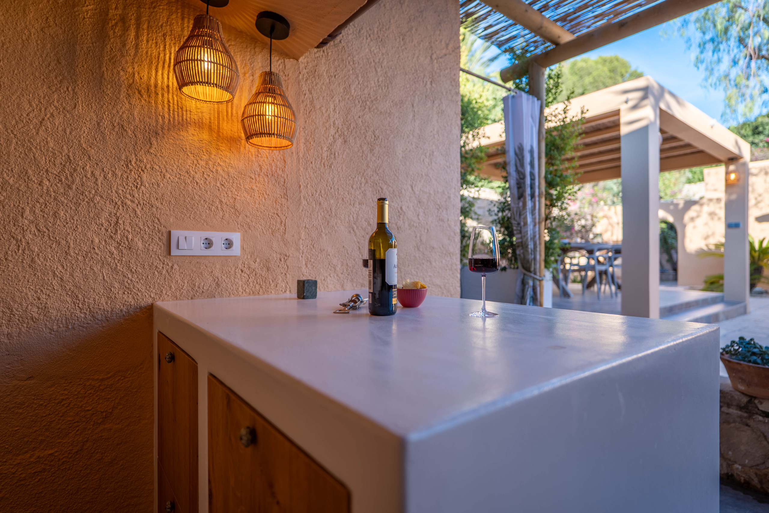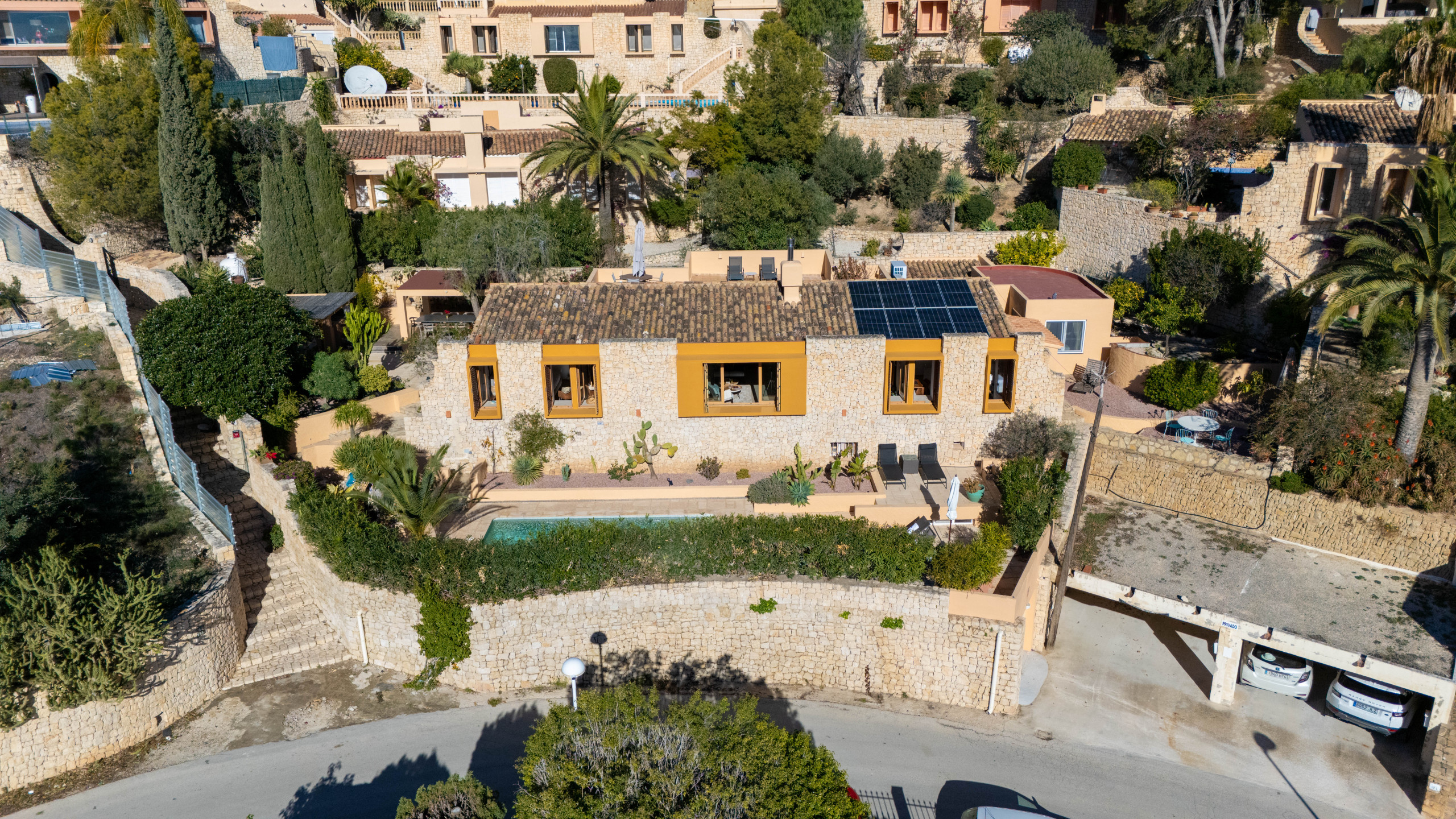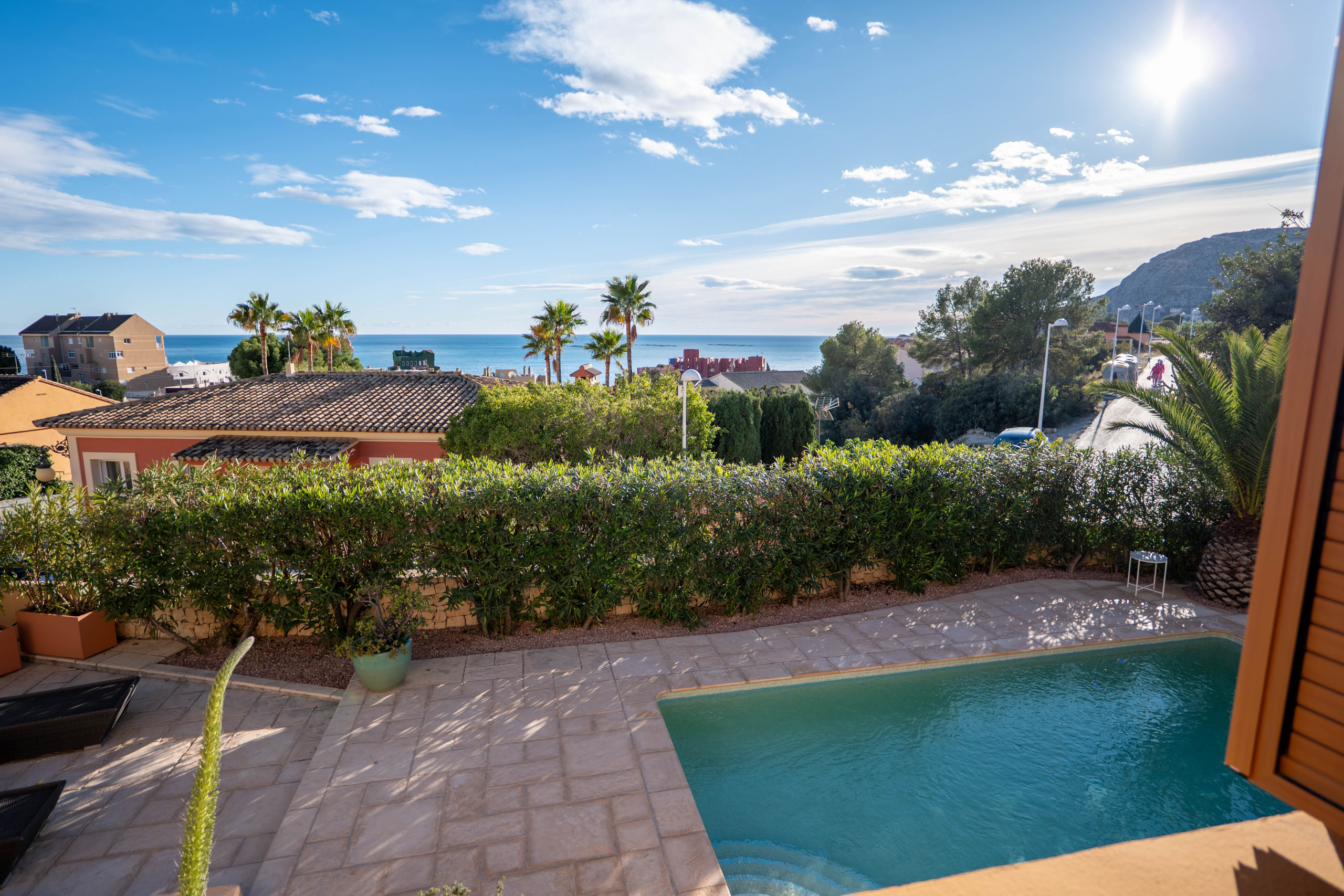 L'Extérieur : Votre belvédère privé sur la Méditerranée. La vie dans cette villa tourne autour de son fabuleux espace extérieur. Entourée de végétation et offrant une totale intimité, la zone de piscine devient le cœur de la maison. Profitez de dîners inoubliables sous la pergola couverte, équipée d'une zone de barbecue complète (plancha à gaz, réfrigérateur et bar), tout en contemplant les silhouettes iconiques de La Muralla Roja et le Xanadú, classés comme Bien d'Intérêt Culturel.