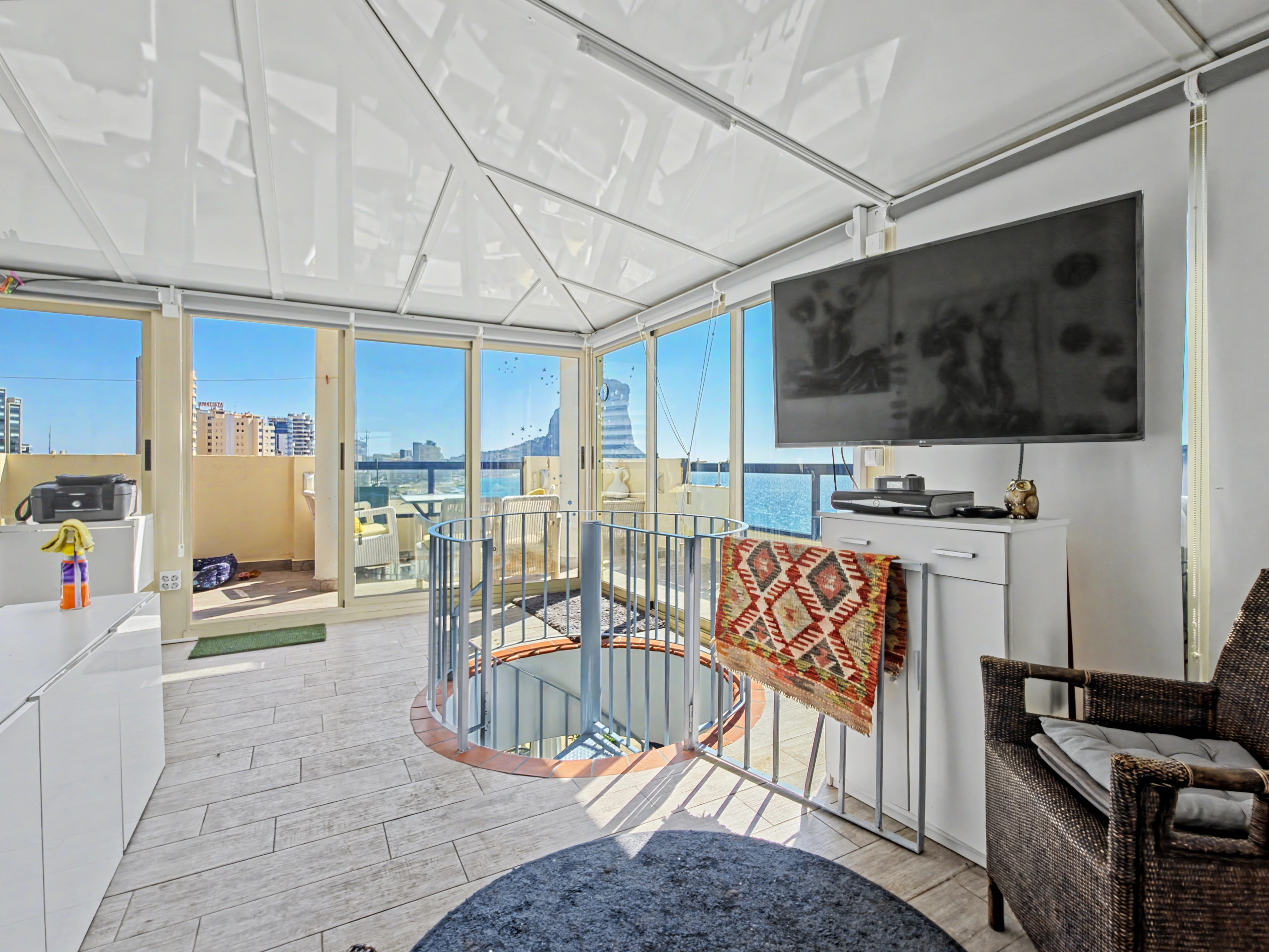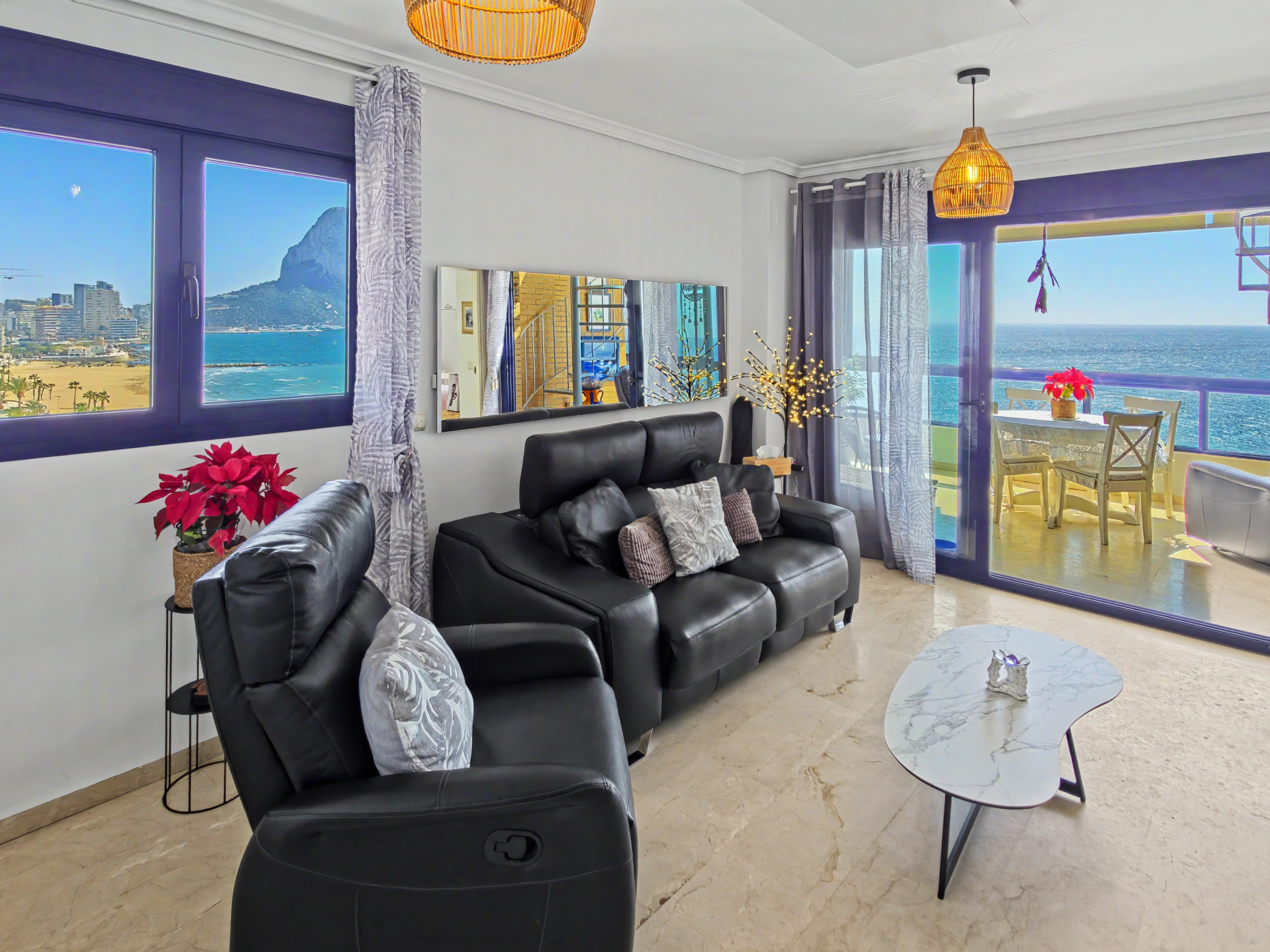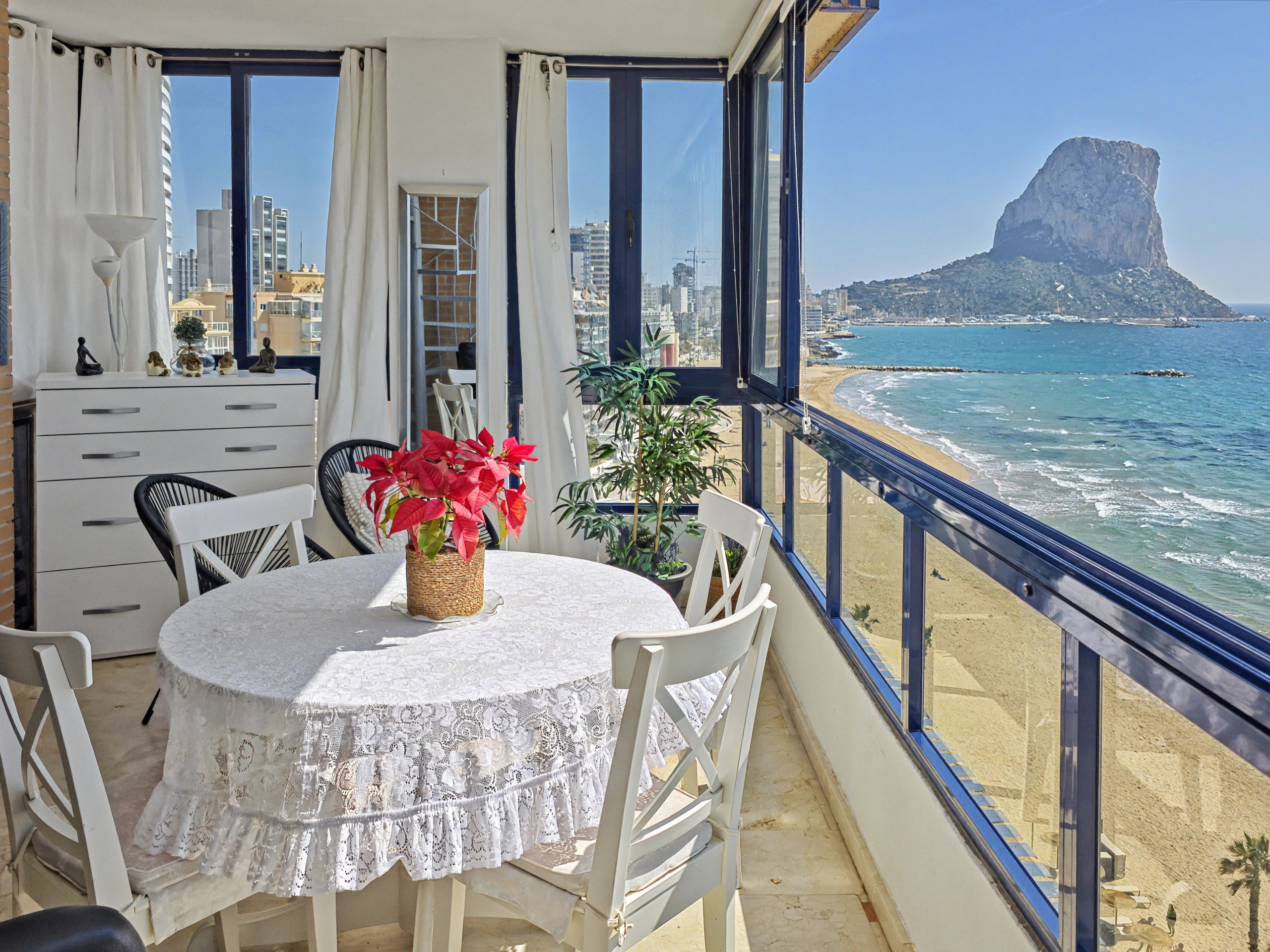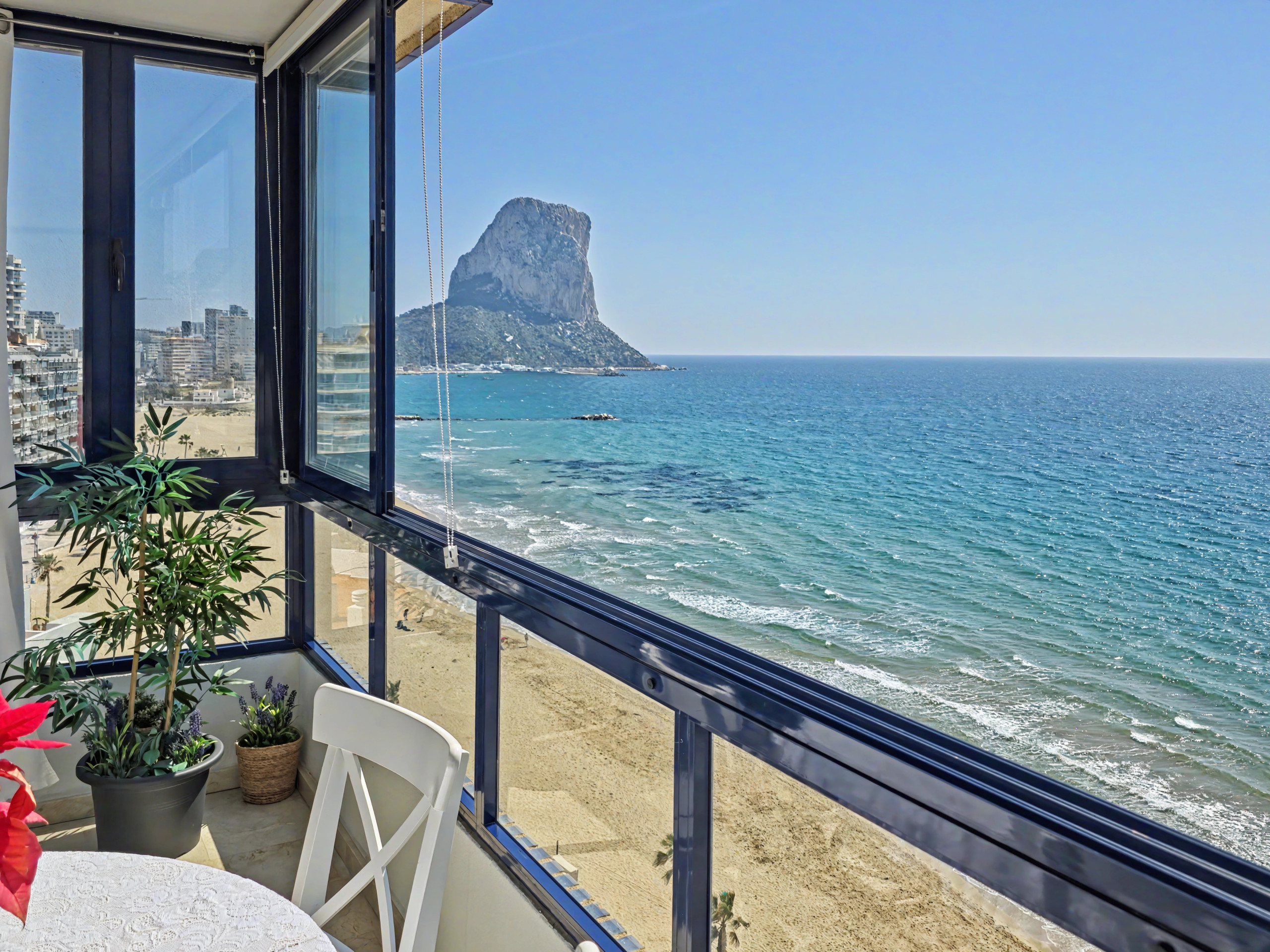 Situé au dixième étage avec une orientation frontale, cet attique est de véritables balcon sur la mer. Profitez d'un panorama complet : depuis le célèbre Rocher d'Ifach jusqu'à l'autre extrémité de la baie. 🌅