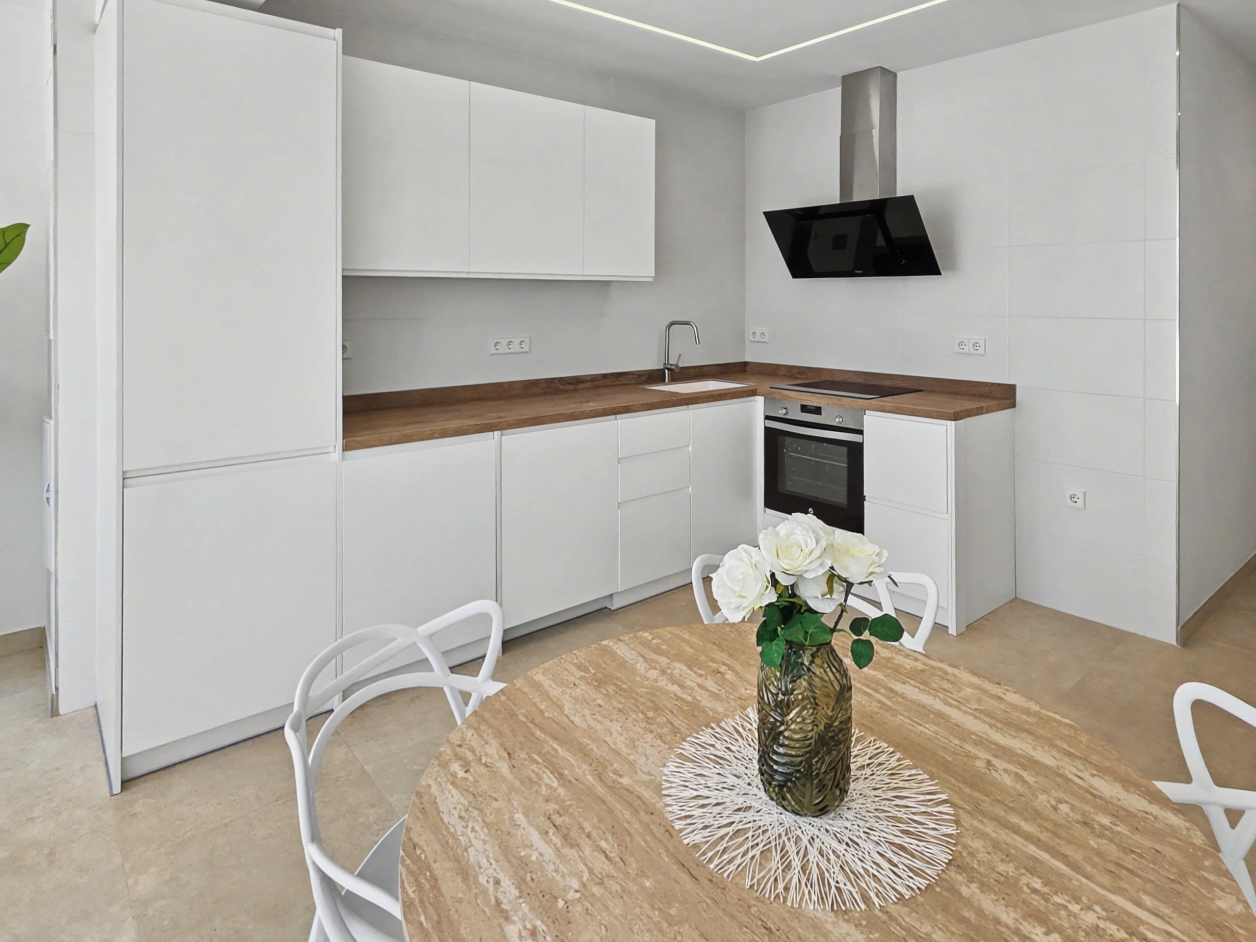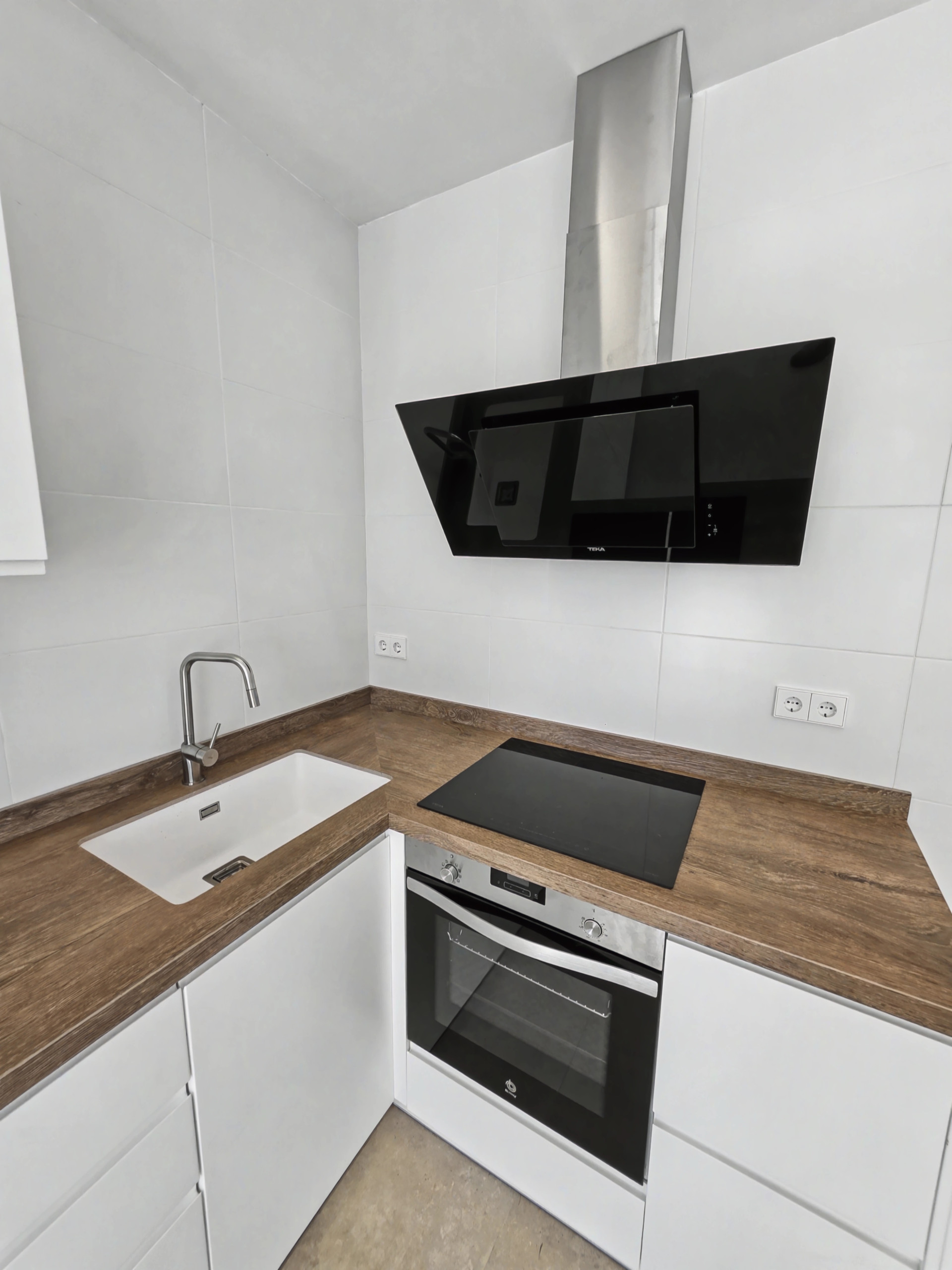 La cocina americana, de inducción, está equipada con nevera, horno, congelador y lavavajillas.